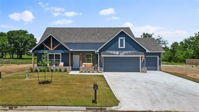 Sophistication and charm blend seamlessly in our Augusta floor plan. As you walk through the front door, you're greeted by beautiful cathedral-esque vaulted ceilings and a stunning kitchen island. Enjoy cooking in your new kitchen, which features a spacious walk-in pantry, a decorative wood vent hood, a farm sink, and extra storage... built-in lockers conveniently accessible by the garage to a built-in bar area adjacent to the kitchen. This layout features large picture windows throughout, allowing natural light to pour in and fill the space. The spacious primary suite is found in the far corner of the home and includes amenities such as an extra-large walk-in closet, an ensuite bath with dual sinks, a soaking tub, and a luxurious large shower. The living room is enhanced with a cozy gas fireplace and warm wood beams, creating a welcoming atmosphere. The study is thoughtfully designed with French doors for added elegance. Outside, the home showcases warm cedar accents, adding to its charm and curb appeal.