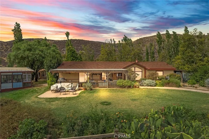 Gorgeous Ranch on 19 acres All Flat and usable. Perfect for multiple Homes on two parcels. Home is 1800 sq ft home 3 bedrooms and two full size bathrooms with a office, custom wood doors through out the home. Champion size roping arena and also a calf arena with an announcing platform, Six pastures with shelters. Five cattle pens with shelters, Custom MD Barn with eight stalls a bunkhouse with a bathroom and also a tack room. There are three wells on the property, greenhouse , chicken coop. About an acre and a half of Zinfandel grapes Custom Pizza Oven. Oversized four car carport. two large round pens. Three large Connex boxes one of them is fully refrigerated. Home has two parcel numbers, This set of parcels are perfect for a Vineyard, A Horse or cattle Ranch, Or a Home Business, This Ranch has so much to offer and is a must see. Low taxes very private and secluded area. Bring the whole family and build a home for everyone. Enjoy the Tranquil Atmosphere. Close to the Back side of Temecula and the Wine Country.
