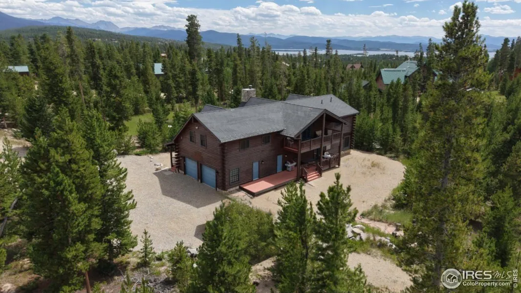 Nestled on 2.8 pristine treed acres, this impeccably maintained 6-bedroom, 4-bath custom log home offers an unrivaled Colorado mountain living experience. With over 4,600-square-feet of finished living space, experience modern convenience with the rustic charm of logs, exposed beams and hickory hardwood floors. The spacious great room features soaring vaulted ceilings and a beautiful wood burning fireplace with floor to ceiling river rock. In the gourmet kitchen you'll find custom hickory cabinets, granite countertops, double ovens and a gas cooktop. A separate dining room, two main floor bedrooms, a full bath, laundry room and a mudroom complete the main floor living area. Upstairs, retreat to the primary suite featuring three closets, a private 5-piece bath, and an additional sitting area. The spacious loft offers direct access to the rear deck. The upper level also includes a 27' X 27' bonus room with a gathering area, full bath and 2 built-in beds, plus dedicated space for an additional double bed. The perfect private area for guests or family activities. Basement (finished in 2020) provides two additional bedrooms, 3/4-bath, game room/bonus space for entertaining, and an additional storage area. Owned security system and propane tank included. Oversized, 2 car attached garage and plenty of additional parking. Bring your toys! Enjoy peaceful mornings or evenings of entertaining on one of the four private decks surrounding around the home. Located just minutes from Grand Lake's charming village and the western entrance to Rocky Mountain National Park, restaurants, three lakes and world-class hiking, fishing, and snowmobiling.