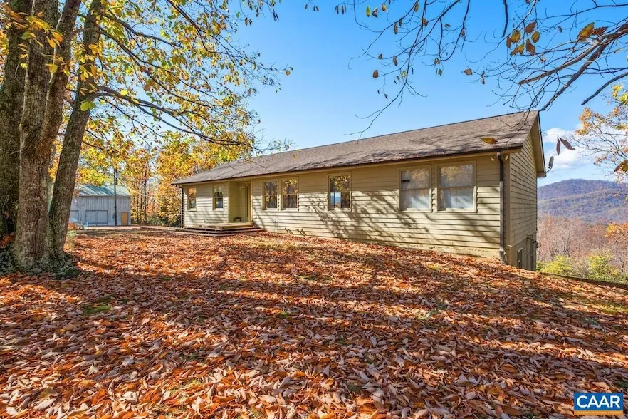 Privacy and views! Perfect place to call home full-time or as a vacation getaway especially if you want to be surrounded by mountains, woods, and nature instead of people. Panoramic views inside and out! As an extra added bonus stay connected with access to fiber optic internet with Firefly and also be within 8 miles of Rt29 for an easy commute to Charlottesville or Lovingston town hub. Ranch style home on a full basement with plenty of room for family and friends, as well as your favorite hobbies with a 1,200+ sq ft pole barn with 3 sliding doors for cars or workshop; building has 16 ft ceilings, electric, heater, and fans. Extras: Roof (2018), stove and dishwasher (2020), vaulted ceilings, gas fireplace/stove in basement, spacious primary bedroom and bathroom, living area and a secondary den/family room in basement, option for 4 or 5 bedrooms (one used for exercise; septic for 3Br), cleared yard/garden area, and great hunting. Can be sold with select furnishings. Community handles snow removal and road maintenance; minimal restrictions to just maintain peace and property values such as tents/mobile homes/vehicles for temporary use (no more than 1yr), and NO unlicensed vehicles, hunt clubs, or timbering. (No short term rentals.)