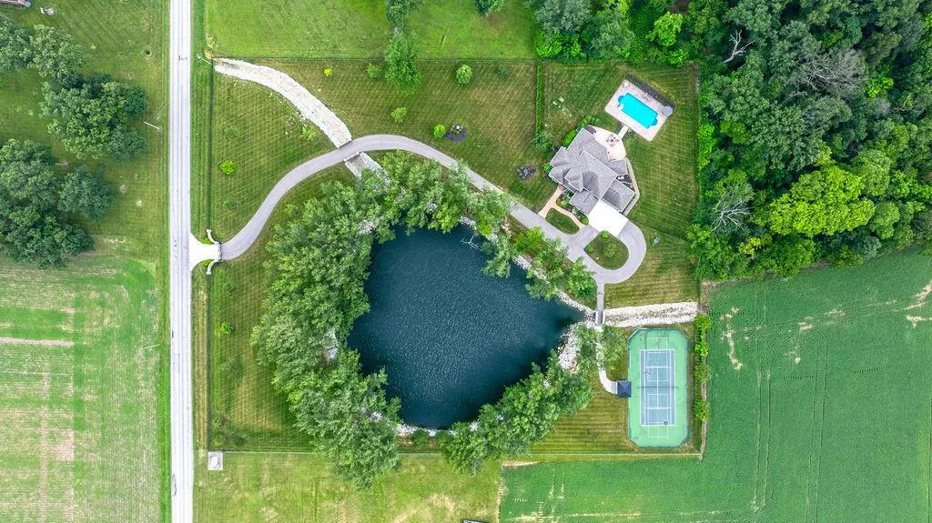 Here is an amazing opportunity to own a newer custom-built home on over 7 acres of gorgeous, gated estate grounds consisting of 2 separate parcels! As you drive through the gated entrance, you'll immediately be captivated by the setting, creating a unique private oasis only minutes away from highways, shopping, and dining. The quality built custom home features an oversized first floor Owners Suite, complete with Spa Bath, Sitting Rm with fireplace and direct access to the covered Porch, terrace, and in ground pool! The thoughtfully designed open floorplan features all the high-end finishes and features you'd expect in a custom built home of this caliber. The main level additionally includes a private Office, Bath, Great Rm, Dining Rm, Chef's Kitchen with huge island, Hearth Rm, and walk-in Pantry with Laundry access! There is a total of 3 fireplaces on the main level and a 4 car Garage! Upstairs are 3 spacious Bed Rms, 1 of which is an En Suite with private Bath and Sitting area. The other 2 Bed Rms share a jack-n-jill Bath. Additionally, there is a large Play Rm or Flex Space that has a closet and access to a Bath so could be easily converted to another Bed Rm on this level (5 total) if needed. The Lower Level features tall ceilings, a completed full Bath, generous space with daylight windows and an easily accessible Crawl Space for storage. Outside, all the family will never want for something to do with the pristine pool, covered Porch with fireplace, terrace with grilling station and fire pit, tennis courts with covered observation Pagoda, and a pond surrounded by tall mature trees. This estate truly offers the ultimate in comfort, quality, privacy, and lifestyle! Seller is offering an interior painting credit which can be completed before close and possession!