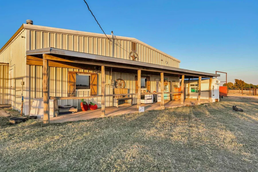 This 2896 sq. foot homewas originally the Mangum Livestock Sale Barn, which was subsequently converted to a 3 bedroom/3 bath home. Home has spacious rooms, an attached carport, fenced yard with above ground pool, and a large covered front porch. Property is 8.32 acres with4 large iron pens 100 X 40 and 25 smaller pins,2 loading chutes, a hydraulic working chute, and covered sheds. There are 3 large grain bins, a workshop/barn with concrete flooring and electricity, and a roping arena with roping chutes. This property has multiple uses, would appeal to cattle or equine business. The property would also make a great pre-conditioning facility, vet office, holding or resting pens, or home for cowboy or rodeo family. Possibilities are endless. Plenty of room to to get semi trucks in and out of property. Security system remains with the property.