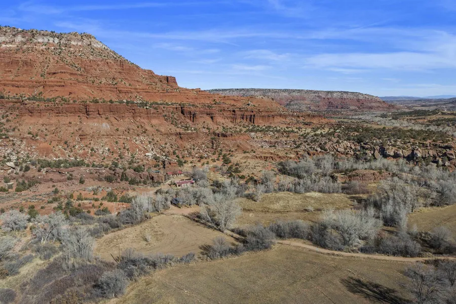 Located past Abiquiu Lake off Hwy 96 in Coyote, adjacent to BLM, Resolana Farms offers 37 acres of some of New Mexico's finest views, facing O'Keeffe's famous Cerro Pedernal to the east, the red rock cliffs of the famous Spanish Trail to the north and west, & the Rio Puerco & Poleo Creek drainages to the south. Resolana Farms is subdivided into four lots, with the main house, guesthouse & studio all on one parcel nestled into the red rock cliffs & flanking the river. Surface irrigation rights from the Arroyo Del Agua Acequia are utilized for 14.84 acres of rich, fertile pastures abutting the river. The remaining 17+ acres of land stretches from the red rock canyons on the north to the river and across to the acequia watered fields on the southern end of the property. The main house, original from the turn of the century, was remodeled in 1994 & features passive solar, adobe walls, vigas & hand-crafted doors & cabinetry, along with front & back covered porches. The guesthouse also remodeled in 1994 features hand troweled plaster walls, viga ceilings, custom tiles & cabinets in the kitchen & a loft with sleeping & storage space. The studio is ideal for the artist with built in bookshelves & a custom built fireplace. The ranch offers a barn, complete with locking tack room, hay storage and covered space for tools, machinery & other agriculture items. Corrals and pens exist for horse & livestock pasture rotation. Here is your opportunity to ranch, farm, paint & retreeat.