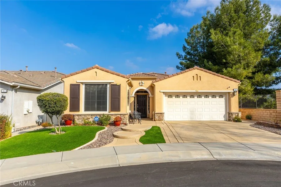 GREAT VIEWS and LOW MELLO ROOS. This Beautiful Heritage III home with its magnificent views. Inside you'll find upgraded large neutral tile and upgraded carpeting. This great floorplan offers 2 bedrooms /2 baths, den/office, good-size kitchen which opens to great room and formal dining room. Chef's kitchen has upgraded cabinets, black appliances, Granite counter tops and large island. This elegant home has a fireplace. wide baseboards, and also window coverings and shades stay with the purchase of this lovely home. The back yard is done with easy upkeep in mind and displays phenomenal views of the beautiful mountains in this area. Indoor laundry has upgraded cabinets and sink and access to the attached two car garage which has some built-in cabinets and storage racks. Easy freeway access - close to shopping, casinos, Cabazon Outlet and a short drive to Palm Springs