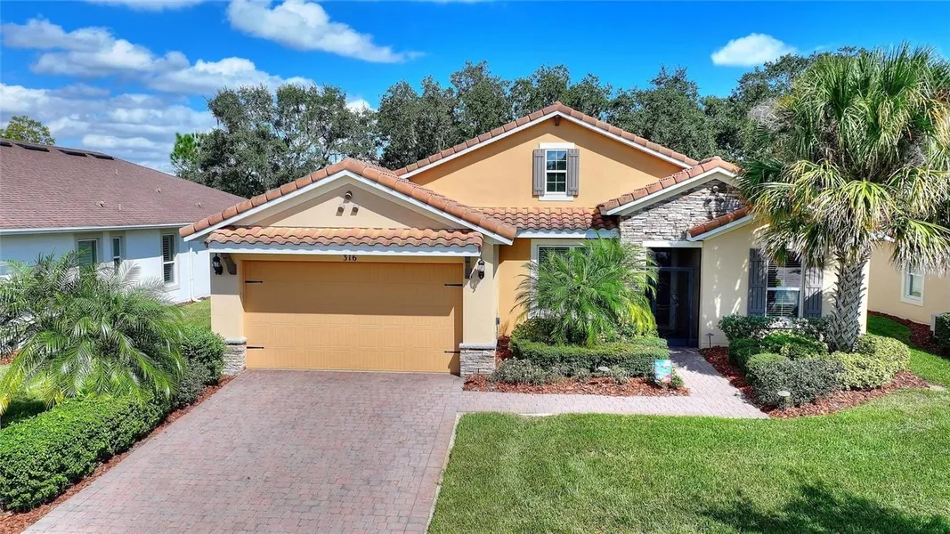 Welcome to your dream home! Located at 316 Treviso Drive, this rare 18th fairway GOLF COURSE residence in Central Florida's acclaimed, award winning Solivita community offers an exquisite lifestyle. Experience the charm of the Tuscan-style Savona model featuring not one, but TWO OWNER'S SUITES alongside stunning views of the 18th hole. The exterior greets you with a stacked stone facade, a beautiful barrel tile roof, and mature oak trees, providing splendid curb appeal. JUST A SHORT STROLL AWAY, you’ll find the village and all its amenities. Enter through the screened portico and leaded-glass front door into a warm, open layout that seamlessly adapts to your lifestyle. Inside, upgraded tile flooring flows through public spaces, complemented by elegant 8' doors and soaring ceilings. The french-door den/flex room is an ideal spot for work or relaxation. For entertaining, the GOURMET KITCHEN shines with soft cream cabinetry highlighted by copper glaze, under-cabinet lighting, QUARTZ countertops, and a striking marble and glass backsplash. Gather around the oversized curved island for meals or socializing, making unforgettable memories in the expansive great room equipped with SURROUND SOUND. Step through the 12’ sliders to reach your inviting lanai — a full-width screened and partially covered outdoor space, perfect for relaxation or entertaining. You'll enjoy unobstructed views over the fairway, where you can wake up to gentle sunrises and unwind in the evening shade, with no rear neighbors to disrupt the tranquil beauty. The two luxurious owner’s suites serve as personal retreats, boasting plush carpet, double-racked closets, and spa-like baths featuring rich cabinetry and designer accents. Additional accommodations include a 3rd bedroom and a full bath, perfect for hosting guests. The home’s thoughtful layout presents a convenient drop zone off the garage and a well-placed laundry room, ensuring efficiency. This property exemplifies comfort, elegance, and a vibrant lifestyle, ready for you to make it your own. Opportunities like this are rare, so don’t wait! Arrange your showing of this stunning estate within Solivita’s dynamic 55+ community. With amenities such as 14 pools, 2 championship 18-hole golf courses, tennis, pickle-ball, basketball, softball, and over 240 clubs, plus spa services and two state-of-the-art exercise facilities spread across 4,200 acres of conservation, you'll have everything you need at your fingertips. Enjoy additional perks such as landscaping, irrigation, high-speed fiber internet, and TV included in the HOA. For your convenience, HCA Florida Poinciana Hospital is directly across the street along with a 42,000 square-foot medical office building. Also recently opened across the street is the new Poinciana Lakes Plaza. Here are some of the stores that have already opened or will be opening soon: Sprouts Farmers Market, Petco, Rack Room Shoes, 5 Below, Ulta, TJ Maxx, Ross, Burlington, TD Bank, Outback Steak House, First Watch Restaurant, Five Guys, Popeye's, Bojangles, Coldstone; along with current Walgreens, Wells Fargo, Little Caesars, McDonald's and more! Please do not hesitate to come see this gorgeous home and perhaps make it your new Solivita home!