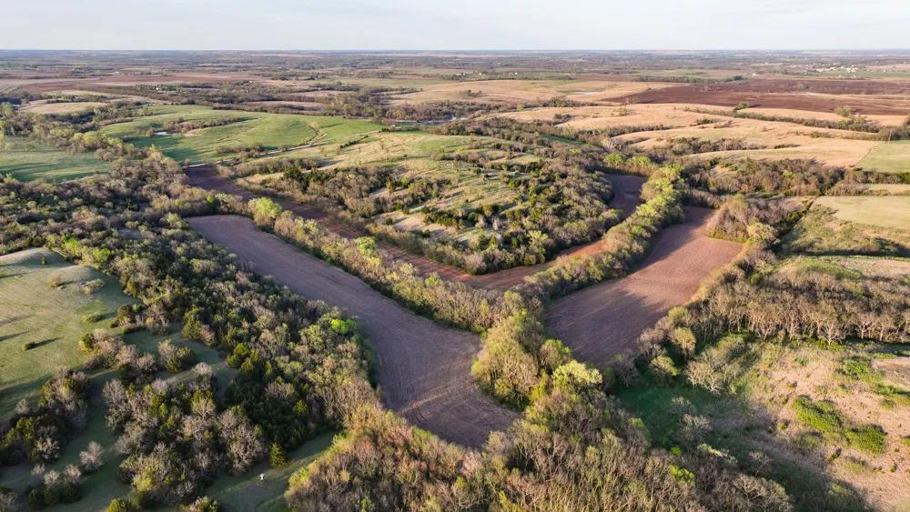 This 317 +/- acre property is located in northwest Shawnee County, Kansas. It has everything and then some for an all-around premier hunting and recreational property! The property is full of diversity with creek-bottom tillable fields, rolling native grass hillsides, and wooded draws for hunting! The 42 +/- bottomland tillable acres primarily consist of Class I Reading silty clay loam soils with an average NCCPI overall rating of 70. The remaining 275 +/- acres have rolling native grass hillsides, multiple watering ponds, and wet weather creeks, and a variety of timbered draws and thickets throughout. The views on the property are some of the best Kansas offers with over 110 feet of elevation changes.