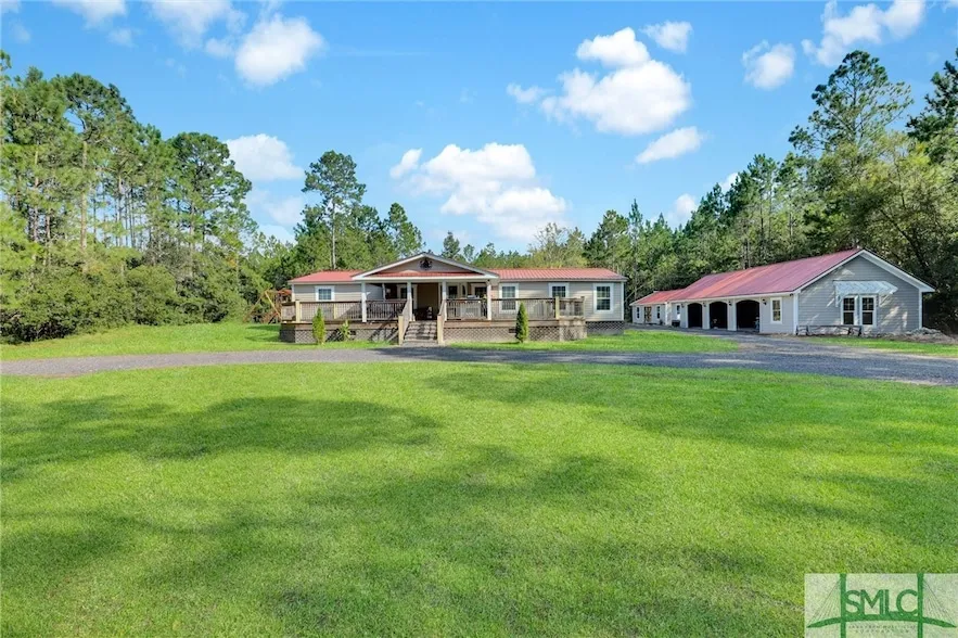 Welcome to 317 Cypress Bay Loop! Located in the heart of Pembroke on a large 2.50 acre lot. This beautifully updated mobile home offers 4 bedrooms and 2 bathrooms. Relax on the expansive front deck or unwind in the spacious living room after a long day. The kitchen offers plenty of cabinet space for all your storage needs, countertops, and a breakfast bar. Enjoy formal meals in the separate dining room, complete with a fireplace for added warmth. The large primary bedroom offers an en-suite bath with dual vanities, a tub, a separate shower, and a walk-in closet. The additional guest rooms are generously sized for comfort. Outside, you'll find a massive patio surrounded by mature trees and a peaceful wooded view, offering plenty of space for outdoor activities. A detached garage and storage building provide extra room for all your outdoor gear. Conveniently located near the new Hyundai plant, I-16, Ft. Stewart, Savannah International Airport, and Gulfstream.