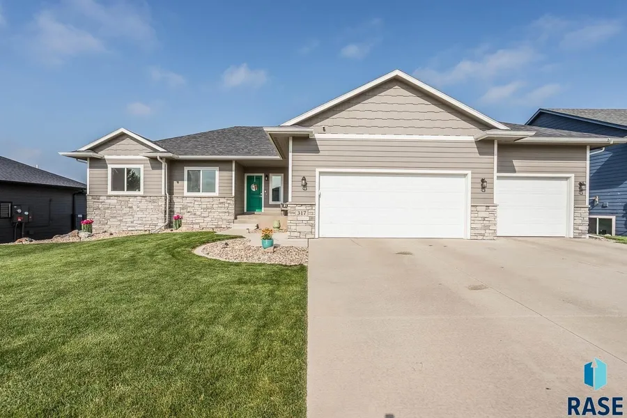 Welcome to this desirable northeast Sioux Falls home with no backyard neighbors! This beautifully touched-up 5-bed, 3-bath home offers a spacious & functional layout with three bedrooms conveniently located on the main level. You'll love the updated LVP flooring, fresh interior paint, & open concept living area featuring an electric fireplace & trayed ceiling. The kitchen offers plenty of prep space with granite counters, SS appliances & handy pantry. The primary suite includes a WIC & beautifully tiled 3/4 shower. Step out onto the massive, covered deck-perfect for watching sunsets-which overlooks the brick edged landscaping and recently fenced backyard. The lower level includes a large, open family room with a cozy gas fireplace, walkout access to the backyard, a wet bar, two additional bedrooms, & abundant storage space. The oversized garage is a standout feature-plumbed for heat & ready for your projects or toys. Located near parks, schools, & shopping, this home is the total package!