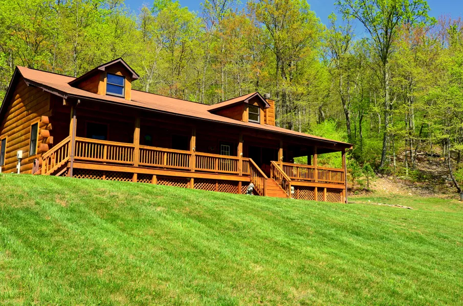 100-acre mountain retreat property with a log home.