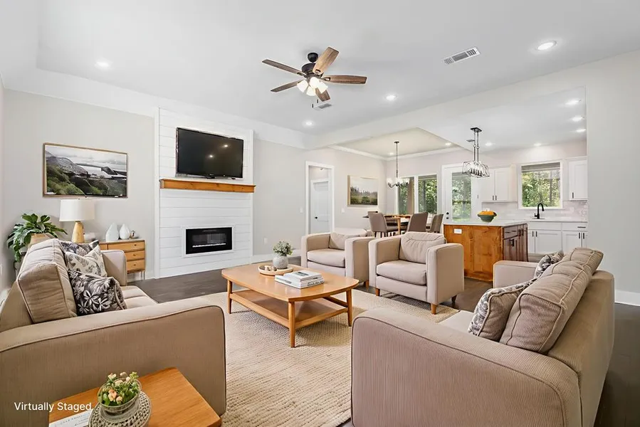 This gorgeous new construction is now complete and ready to impress! With 3 spacious bedrooms and 2 beautifully appointed bathrooms, this home blends modern design with everyday comfort. The open-concept layout flows effortlessly from the kitchen to the dining and living areas, making it ideal for entertaining. Unwind by the sleek electric fireplace or whip up your favorite meal in the stylish kitchen. The primary suite is a true retreat, featuring a spa-inspired wet room with a soaking tub and walk-in shower, plus a pass-through walk-in closet that connects directly to the laundry room for ultimate convenience. Every detail has been thoughtfully designed to elevate your lifestyle. Tucked away in a quiet part of town, yet just minutes from shopping, dining, and everything you need; this home delivers the perfect mix of serenity and accessibility. Don’t miss your chance to own this move-in-ready gem filled with charm, comfort, and timeless appeal!