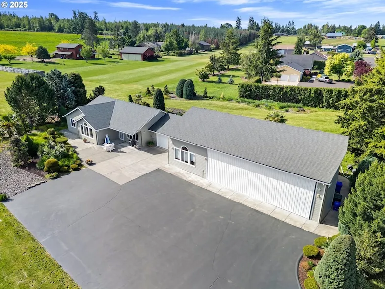 Welcome to Flier's Haven - where adventure meets serenity! You don't need to be a pilot to fall in love with this one-of-a-kind property. Tucked away on 1.5 private acres, this beautifully maintained home offers unmatched space, flexibility, and peace of mind - perfect for every hobbyist, entertainer, or nature lover. Step inside to discover a light-filled, open-concept kitchen, living, and dining area, complemented by thoughtful updates. Major improvements include a new well, heat pump, multiple water filtration systems, exterior paint, remodeled kitchen and bathrooms, and more. The home features three comfortable bedrooms and two full bathrooms, including a generous primary suite with a walk-in closet. Just off the main living space, you ll find a large versatile bonus room. The attached garage and hangar-style accessory garage is perfect for storing toys, tools, or transforming into your dream workspace. Step outside into your personal retreat featuring multiple patios, a sparkling pool with a new pump, low-maintenance landscaping with sprinklers, and wide open green space ready for outdoor fun or relaxation. Don't miss this rare opportunity to own a truly special home in Flier's Haven. Located in the heart of Molalla, you're surrounded by natural beauty, with the Molalla River and Table Rock Wilderness just minutes away. Enjoy small-town living with easy access to Oregon City and Portland. Comfort, convenience, and adventure all in one place! Call sign, FAA Code: OL05