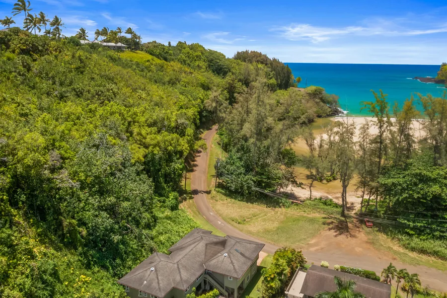 Exceptional quality beach home in an idyllic north shore location! Nestled at the end of a quiet road where the river meets picturesque Kalihiwai Bay. Stroll to the beach for a swim or enjoy a peaceful paddle up the Kalihiwai River to explore waterfalls. Launch a boat, canoe or kayak for a relaxing ocean trip or fishing, and a surfboard for outstanding surf!