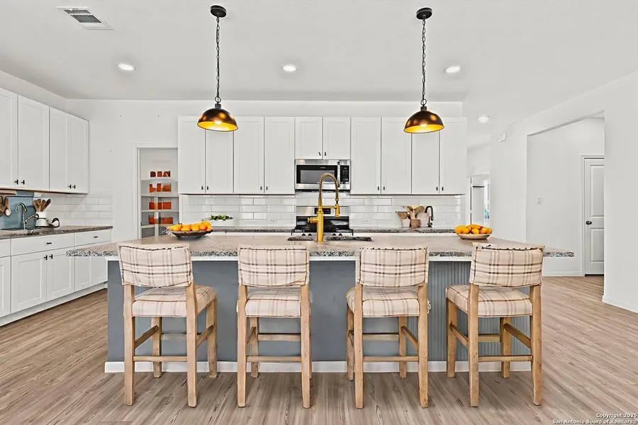 Priced to sell quickly! his Bulverde beauty delivers the perfect blend of thoughtful design and relaxed sophistication. The main level welcomes you with luminous open living spaces, anchored by a refined home office that balances productivity and calm. The gracious primary retreat sits privately apart from the guest wings-your own serene sanctuary within the home. Upstairs, a bright and airy game room offers room to unwind, play, or get creative. Four additional bedrooms provide flexibility and charm, adapting effortlessly to your lifestyle and needs. Step outside to an extended patio ideal for al fresco dining, slow morning coffees, or simply soaking in the Hill Country breeze. The beautifully xeriscaped yard offers a graceful, low-maintenance landscape-more time to enjoy, less time maintaining. The exterior also features a permanent architectural lighting package, adding year-round curb appeal, seasonal ambiance, and elevated nighttime charm. A spacious 3-car garage provides generous room for storage, vehicles, and hobbies. Nestled in a coveted Bulverde enclave, 31821 Nimbus reflects the peaceful rhythm of the Hill Country while maintaining seamless connectivity to San Antonio. This is elevated living made effortless-and now, incredibly attainable.