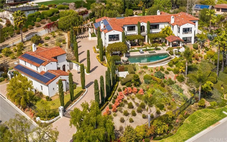Presenting one of the most spectacular estates in Coastal Orange County. From private gates a sweeping driveway leads to this magnificent Santa Barbara style residence surrounded by exquisitely landscaped grounds. The main house and detached guest house combined offer approximately 10,000 SF of luxurious living space. This private estate spans 1.4 acres and sits on a prime elevated lot with commanding views of the ocean, the valley and sparkling city lights at night. Upon entering you are greeted by a wonderful open and bright living area and spectacular views. On one side of the entry hall there is a beautiful living room centered by a magnificent fireplace and on the other side a spacious formal dining room. The gourmet kitchen features a massive center island, a breakfast niche, dual Subzero refrigerators, commercial grade appliances and a Butlers pantry. Perfect for entertaining the kitchen opens to the family room which is accented by wood beamed ceilings and French doors which lead to one of the expansive ocean view balconies. In the main house there are 6 spacious en suite bedrooms plus 3 additional powder rooms. The incredible master suite features a view balcony, a romantic fireplace, a finished library, and a massive walk in closet. The luxurious master bathroom offers a sauna, a jetted tub , shower and dual vanities. An elevator or stairs will take you to the lower level where there is a bar, a games room, a movie theater, a wine cellar and additional en-suite guest bedrooms. There is direct access from this level to 3 of the 7 garages and to the amazing resort like grounds. Just down the driveway is a spacious guest house with 2 more en suite bedrooms. Here you will also find a beautiful recently built gym and garage parking for an additional 4 vehicles. Beautifully landscaped grounds surround a range of outdoor amenities. The magnificent infinity edge pool and Jacuzzi are surrounded by pergola covered patios and outdoor lounge areas. There is an outdoor kitchen/ BBQ pavilion and outdoor sitting areas complete with fireplace. Other remarkable amenities include a mountain view putting green, a bocce ball court and a mature fruit orchard. Situated on Prestigious Peppertree Bend, located just minutes to historic San Juan Capistrano and less than 2 miles to pristine beaches and Dana Point Harbor. This estate offers truly luxurious resort style coastal living.
