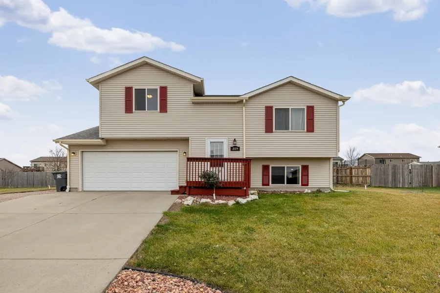 Listed by Holly Hultgren, KWBH, 605-545-1943. Move in ready 3-level home close to EAFB! *Offering a smart layout, this home has bedrooms on the upper and lower levels and an open concept main level layout *Comfortable living room has vaulted ceilings and a large picture window that overlooks the neighborhood *Nearby corner kitchen has good cabinet space white appliances and a window overlooking the back yard *Dining area for meals with slider door to the back yard *2 bedrooms with large closets and 1 bathroom on the upper level *The lower level has 1 additional bedroom, 1 bathroom with walk in shower, a laundry area and a family room with a large built in desk on the perimeter *Drive under 2-car garage is finished, has an epoxy floor and workspace in the back *Raised back deck overlooks the privacy fenced back yard with garden planters, fruit trees and flat usable space *Bonus gravel parking area- perfect space for your RV or boat *Great outdoor storage space under the deck. Located in the Douglas school district, call to see it today!