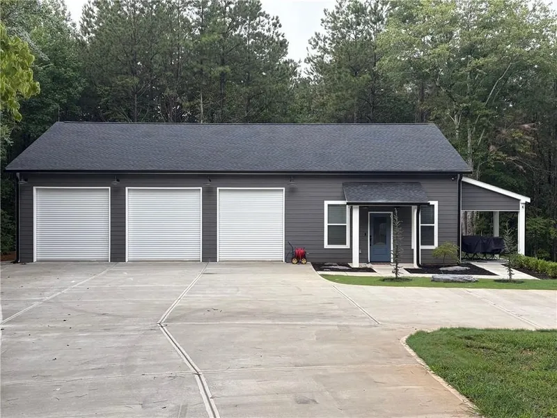BARNDOMINIMUN ON 6.7 AC. with a Good BRANCH running through the property. This Barndo has a total of 2400 sq. ft. with 800 sq. ft. finished living area. The living area is elegant with an open concept! The kitchen features tons of beautiful grey-painted cabinets and solid white and grey countertops. The large island is barstool height and also offers extra storage. The master bedroom has two windows for enjoying natural light and has a nice- sized closet. The Bath offers a double vanity and tiled shower. There lies a covered patio just off the Kitchen. The laundry room has access to the massive garage /shop area. The garage offers three 10 ft. doors, one exterior door and a half bath. There is a ton of room to either continue using for a shop area or possibly add additional living space. The driveway is wide and has plenty of parking area and a turning area. Beautiful landscaping completes this unique property! The tract of land is heavily wooded with a meandering stream that runs through the entire width of the property. The property is located among other acreage tracts, allowing for privacy and tranquility.