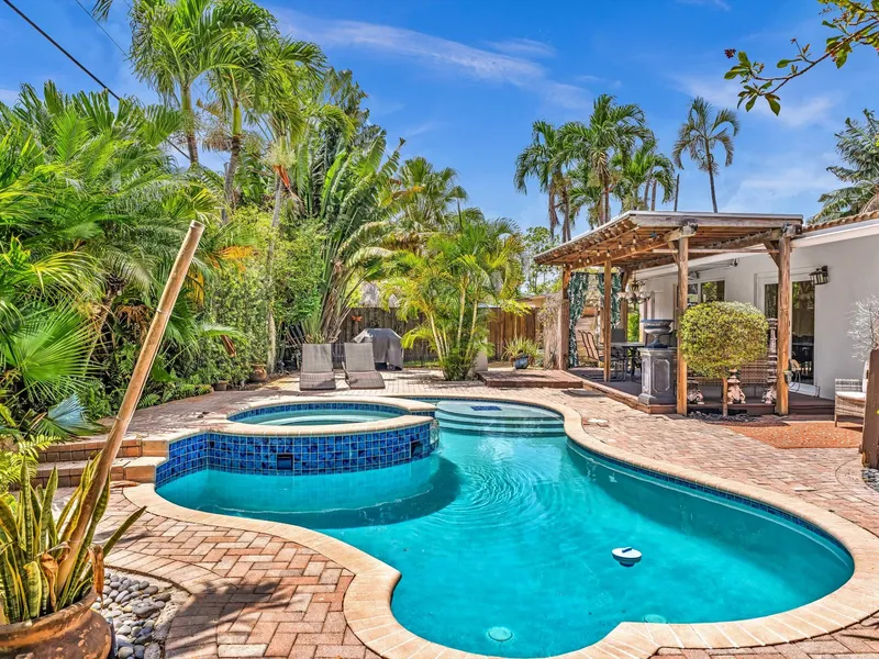 Discover your ideal retreat to use as your full time residence, a vacation getaway, or a profitable short-term rental with a strong performance history and numerous returning guests. This turnkey, fully furnished home features 3 bedrooms and 2 baths. Updates include impact windows and doors, plantation shutters throughout, and a well-equipped kitchen with views of the resort style pool area. Additional highlights include a one-car garage, secondary family room, a large laundry room, private entrance from primary bedroom and an luxury backyard. The outdoor space is a true highlight, boasting a pool and spa, an outdoor shower, plentiful lounging spots, a full-sized bar, and a dining area that seats six, plus a small dog run. All set within a serene and private oasis that's ready for your enjoyment.