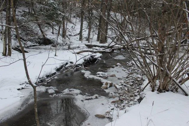 Acreage with approximately 1700 of country road frontage along a quiet year around road. Perfect site for log cabin nestled in the trees overlooking creek. Utilities are available as poles are on the property.