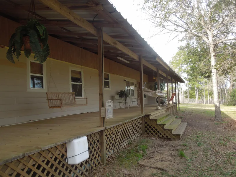 great country property with gently rolling, sandy terrain. A live, running creek, a recently dug pond, and a new water well, provide ample water sources. Mostly wooded with good net wire (goat) fencing around the perimeter and the home site. A 3/2 cabin (1,272sf) provides a great weekend retreat or starter home. A full length covered front deck provides a great spot for relaxing and watching the wildlife. With two-2car garages on concrete slabs, additional slab, a storage building and a 30'x80' metal pole barn, the property features offer lots of storage for all those "weekend warrior toys" Other features include lots of mature Oaks, Elms, Cedars and Pines, 3 gates entries off the county road, working area for livestock, chicken coupe, and much more !!!