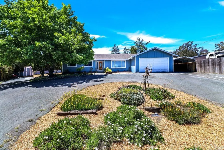 Situated on top of a gently sloping acre with stunning panoramic views of vineyards and mountains sits this fabulous ranch style single level home! Recent renovations include concrete countertops, wood floors, tile and stone, upgraded internet, sound system, crown moldings, skylights, dual pane windows, expansions of primary bedroom, and outdoor kitchen! Parking for multiple cars as well as RV and/or boat storage and private well. All this just minutes from Downtown Petaluma and Hwy 101!