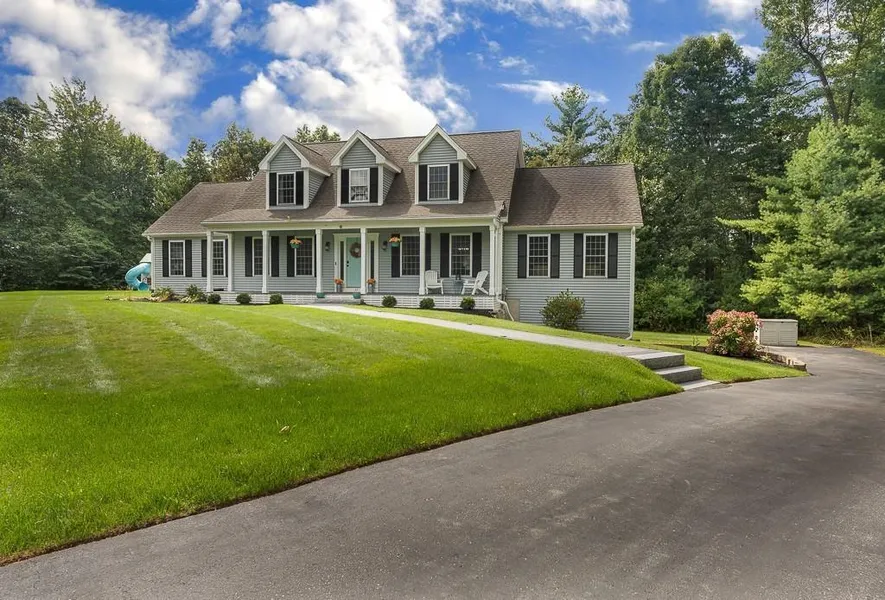 Oversize, custom Cape quietly set at end of a cul-de-sac connected to neighborhood with sidewalks.Newly laid walkway w/integrated lights lead you to open farmers porch. Enter 2 story foyer w/freshly refinished hardwood floors on both levels, black iron chandelier and new paint. The foyer leads to a large open kitchen w/granite counters, new stainless steel appliances and motion sensor sink. The vaulted family room w/gas fireplace is ideal for hosting the holidays along with oversize dining room. All light fixtures have been replaced this year with freshly painted neutral wall colors. First floor master is your own quiet oasis with vaulted ceilings, walk-in closet and jetted soaking tub in the master bath. Upstairs are 3 bedrooms and a full size bath, all with generous closets, Home security cameras, video door bell and irrigation system are just a few of the newest additions. Entertain in your finished walkout basement, mudroom connected to two car garage. Easy highway access to Rt 2.