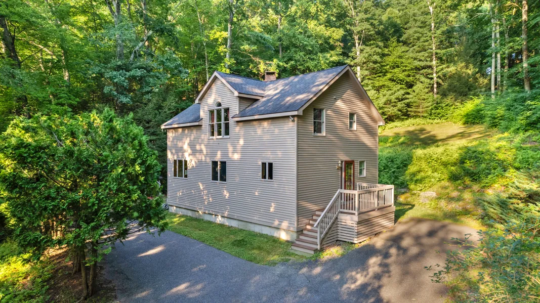 Custom built post and beam home. With open floor plan, kitchen, dining and living room....wood floors exposed beams, wood burning stove, pantry with custom cabinetry .....Bath with shower Second floor with oversized primary with walk in closet, bath jet tub, additional guest bedroom. Oil Heat, full basement, outbuilding or storage. paved driveway, town water and sewer..