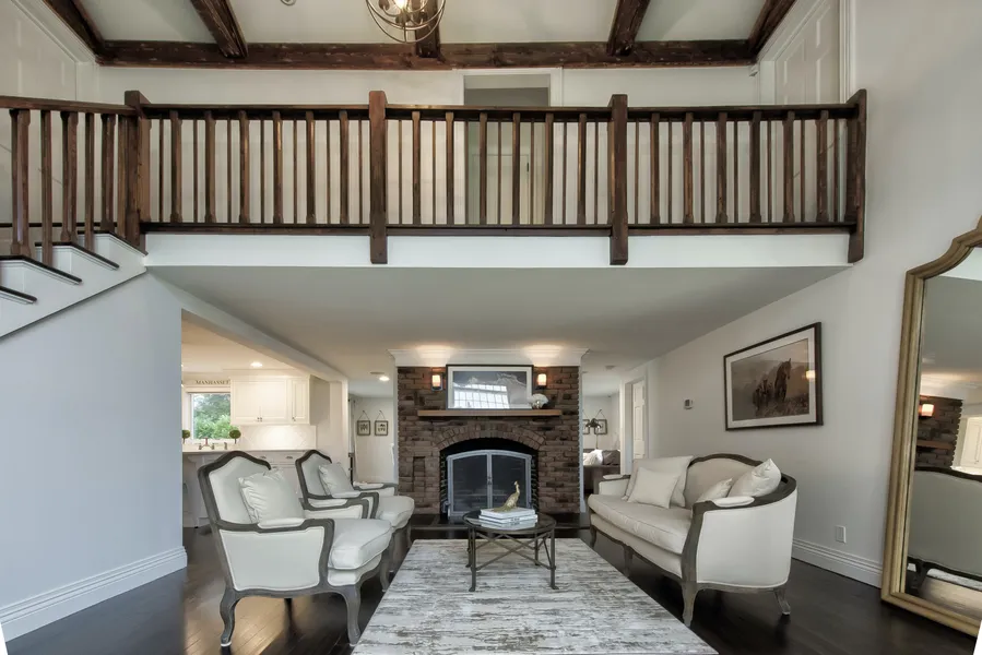 Brownstone-chic in the 'burbs. This sun-filled, completely remodeled stone/shingle home features a dramatic two-story front window, loft-like interior with soaring ceiling, & striking, exposed brick fireplace, which is the centerpiece of the easy, open floor plan. The main floor also features a beautiful updated white kitchen with high-end appliances, formal dining room, sunny family room, updated powder room, master suite with walk-in-closet & renovated bath. Upstairs are two roomy bedrooms with large closets and an updated bath. Outside you'll find a spacious, pristine paver patio, with room for a large table and separate fire pit area, new retaining wall with privacy landscaping, good-sized level lawn area, widened driveway, and paver front walkway. Sonos throughout main floor and outside, security cameras, sprinkler system. Deeded rights to Strathmore Vanderbilt Country Club. Shelter Rock Elementary, Manhasset schools.
