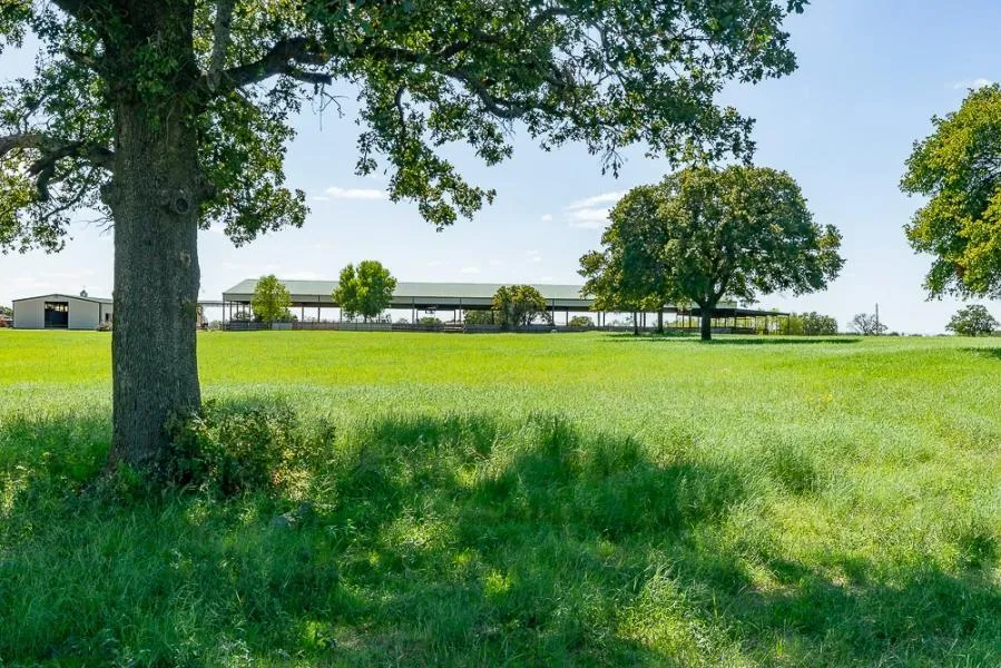 All with soft mattresses and rubber flooring for comfort and health, automatic Nelson waterers with matching stainless-steel feeders. Windows and screens throughout. Fans in every stall, concrete floor alley way, large hay storage area and steel grain bins, two bunkhouse rooms with shared bathroom, full kitchen with washer, dryer, stove, dishwasher, and half bath. Custom office with built-ins. Three wash bays with vet stocks with anti-bacterial easy-clean rubber flooring. 2 bedroom, 1 bath apartment. Break room with kitchen, 1/2 bath, and a laundry closet. A spacious tack room built for a professional trainer with a 16-foot swinging door for easy access/saddling. A covered breezeway leading to arena, and cupolas with heat exhaust fans. Covered Arena - 300X130 arena with overhangs, and a fiberglass "Cutting Critter" with the track hung from ceiling trusses for ease of multiple use. Two strong 65-foot gates which cut the arena in half. Automatic team roping chute with boxes that are recessed behind the arena with stripping chute on opposite ends. Covered cattle pens on both ends with cattle return lane. Three Big Ass fans. 140 x 140 outdoor cutting pen. A 4 horse, programmable free flow walker, four spacious feedlots with cattle chute, loading chute, and automatic waterers. Twelve permanent traps with automatic waterers, covered shelters, and lush grass. Two breaking pens of 50 and 60 feet. Submersible pump to water arenas. Pipe and V mesh fencing for the property perimeter. Main House A custom built brick home, featuring 3 bedrooms, 2 baths, 2 car garage, built in the 1984. Beautiful wood laminate floors and tile flooring, primarily textured walls. A metal roof with guttering. A beautiful kitchen featuring stainless steel appliances, pine cabinetry, a chopping block island, electric cooktop, and an adjoining breakfast area with a bay window. A formal dining room. A large master bedroom, an en suite master bath with a tub/shower combination. A comfortable living and warm living room. A playroom / den with a brick fireplace & built ins. A laundry room, and a two-car garage. A huge concrete back yard patio with a large ornate pergola. An additional extra shop/garage/parking building 50x30 with a 12-foot overhang.