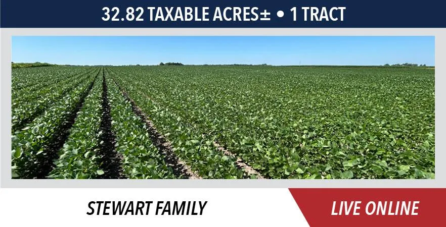The Stewart farm will be sold on a price per acre basis, based on 32.82 taxable acres.