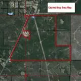 The cabinet shop tract is located just north of Jackson, AL and it is adjacent to Hwy 43. It has naturally regenerated pine plantation type timber that it growing well. The north end of the tract has a small pond and a nice area of hardwoods. There were deer scrapes in many locations on the tract during late Jan. Deer and turkey tracts were spotted in many locations along the power line right of way and it is a great area for doves and wildlife food plots. Of course, the timber markets in this area are the best in the state. This is a wet weather logging tract as well. The owner may divide the tract into two parcels.