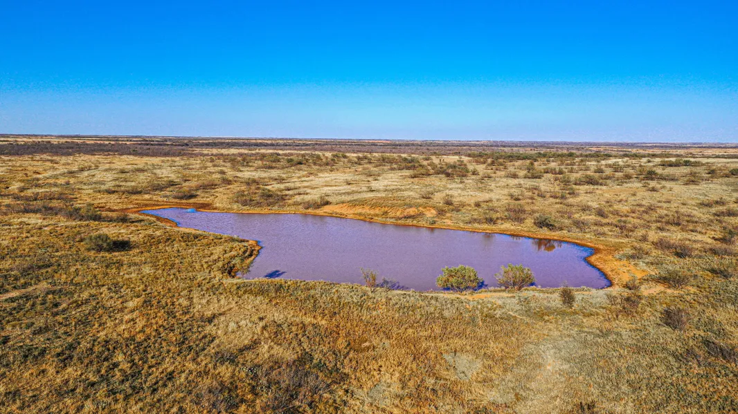 -There is a large pond of approximately 2 acres located in the northern portion of the property, while some smaller water sources are scattered throughout. A windmill water well is currently operational providing water to nearby troughs and a small stock tank.