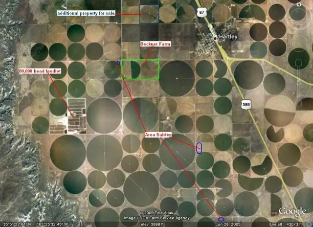 This property is located just west of Hartley, Texas. Represents approximately 320 acres, 3 wells and 2; 1/4 mile sprinklers. Farm grows 1/2 corn and 1/2 wheat. Improvements include a small set of pens, shed and 3 bedroom, 2 bath house. For more information, please give us a call.