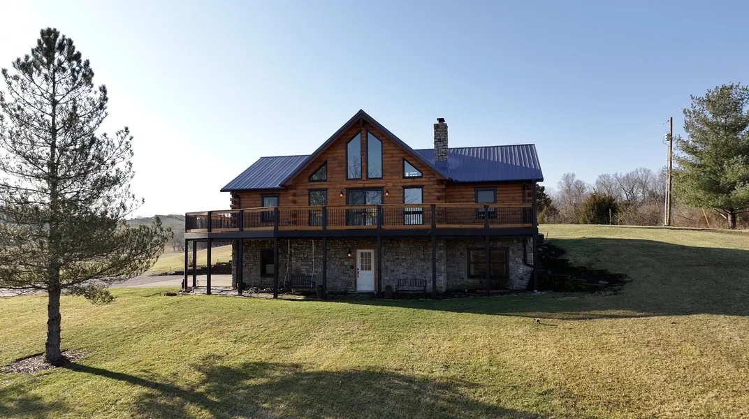 Nestled on 13.9 acres of serene landscape, this enchanting log home graces a gentle hill with captivating views of the surrounding countryside. Meticulously cared for and thoughtfully updated, this rustic abode offers an inviting retreat for those seeking both comfort and natural beauty. Boasting three bedrooms and three baths, including a luxurious primary suite, the home features an expansive great room that seamlessly blends with the kitchen and dining area. Warmth emanates from the gas log fireplace on the main floor while a cozy wood stove beckons from the basement below. Step outside to discover a paradise of outdoor living, complete with a sprawling multilevel deck adorned with a charming pergola, enveloping the home on three sides. A sunken hot tub invites relaxation while an inviting inground pool offers refreshment on warm summer days. Recent updates abound, including a new hot tub, furnace, fence around the pool, and refinishing of the logs, ensuring modern comfort and convenience. With its idyllic setting and myriad amenities, this log home promises an unparalleled retreat for those seeking a harmonious blend of rustic elegance and contemporary comfort.
