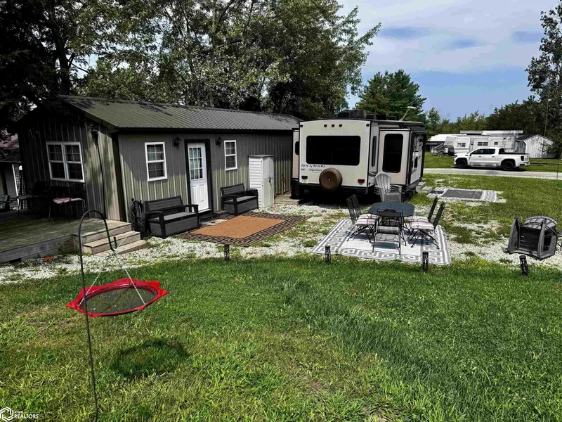 A rare turnkey gem in Sun Valley's camper community-completely move-in ready with full utilities, a beautiful 2015 camper, converted shed-suite, lush play area, and a firepit under the stars, all tucked beside a peaceful, wildlife-filled field and walking distance to the water. Welcome to effortless outdoor living in one of Sun Valley's most coveted camper areas! Simply bring the keys-electric, water, and sewer are fully established. This lot blends immediate comfort with outdoor adventure, ideal for summer escapes! Backing onto a fenced field, this lot offers peaceful, natural views and regular wildlife sightings-serene, private, and picturesque. Gather around the established firepit with built-in seating-perfect for storytelling or s'mores. A grassy area invites kids or pets to roam freely and safely under watch. This property includes a pristine 2015 camper and a sizeable outbuilding transformed into living quarters, complete with a rear deck, integrated parking, and storage. Camper lots like these are seldom on the market-this is a rare opportunity for buyers craving comfort, community, and an active, but simple, lake lifestyle