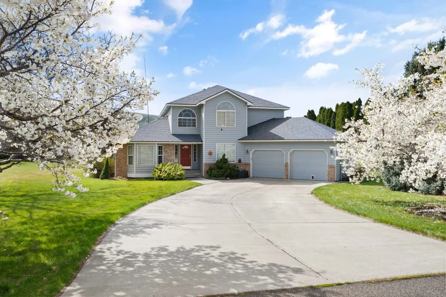 Experience the serenity of country living with the convenience of city amenities only minutes away. Tucked away in a quiet cul-de-sac near the highly desirable Lakes in West Richland, this beautifully maintained home offers the perfect blend of space, privacy,and thoughtful updates. Featuring 3 bedrooms plus a main-level office (with a closet and window, making it a flexible 4th bedroom), 3 bathrooms, and a layout designed for both everyday living and entertaining. The primary suite with ensuite bath, along with two additional bedrooms and a full bathroom, are located upstairs for privacy and convenience. The main level showcases solid hardwood floors, fresh interior paint, and a variety of inviting spaces, including a formal sitting room (or flex space to fit your lifestyle), a formal dining room, a cozy kitchen nook, and a spacious family room with French doors that lead to the back patio. The kitchen was remodeled in 2022 and features updated appliances and a modern design ideal for cooking and gathering. Additional updates include:New carpet in the main-level office (2025), New roof (2018), New HVAC system (2015), 50-gallon electric water heater, Owned water softener, New Exterior Paint (2020), New south facing windows (2025). Outside, the flat, nearly 1-acre lot offers beautiful, mature landscaping and space to enjoy the outdoors. Highlights include raised garden beds, a storage shed, Merlot and Cabernet grapevines, a Criterion apple tree, and an above-ground pool perfect for summer fun. The oversized driveway provides ample parking for vehicles, guests, RVs, ortoys. Washer and dryer are included, making this home truly move-in ready. Don’t miss your opportunity to own a spacious, updated property in one of West Richland’s most desirable locations!