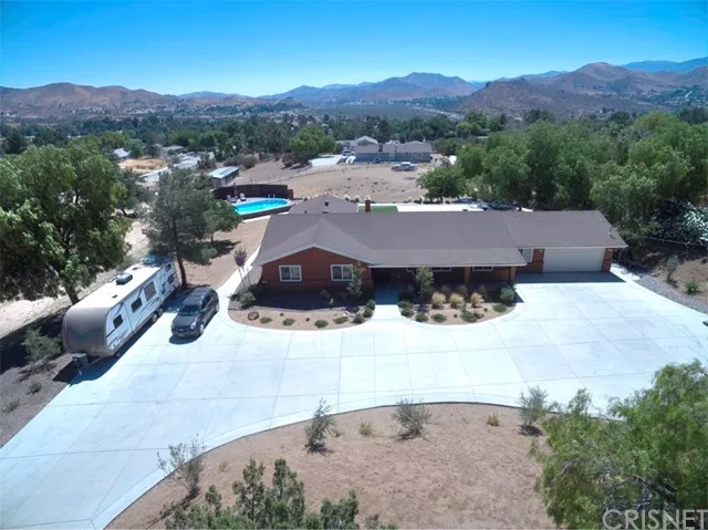 Have you been waiting for that perfect family and horse friendly property located in the heart of Acton? Well, here it is! This lovely updated ranch style home is situated in a prime location at the top of a paved street on a 2 acre corner lot with panoramic mountain views! The home is single story and spacious with 3 bedrooms, 3 bathrooms, an office and separate laundry/mud room. The views you will enjoy from the kitchen and family room includes the solar heated pool with wrap around deck, heavenly 5 stall barn (with tack & hay rooms), playground and manicured backyard with high end artificial turf, designer dry creek bed, stamped concrete and outdoor lighting as well as beautiful views of the gentle rolling hills in the distance. The landscaped portion of the property is easily maintained on an automatic drip system. The home also has a storage shed, dog run, RV parking, gorgeous custom front gate, complete fencing, 50 Yr. laminate soundproof floors, new covered patio with ceiling fans and LED lighting, fresh paint, newer windows, upgraded kitchen, new air conditioning unit & more. This home is turnkey and ready for its new owners to call it home! A golf cart is included so you can drive around and enjoy what feels like a private compound away from it all! Another great bonus is the home utilizes city water and natural gas. The property is located minutes from the freeway, local schools, park, wineries, hiking trails and riding arenas. Country living at its best!