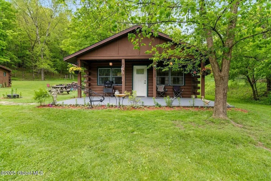 Adorable and affordable log home on 1.4 acres! This charming 1BR/1BA cabin features a welcoming front patio where you can relax and listen to the tranquil sounds of the creek across the street. The expansive open lawn is perfect for gardening, outdoor entertaining, or simply enjoying nature. A detached two-car garage crafted in matching log construction adds both functionality and curb appeal. Recent updates to the kitchen and bathroom make this home truly move-in ready. Priced at just $165,000, this cozy getaway is packed with rustic charm and modern comfort. Highest and Best offer due Wednesday 5/28/25 by 10AM.