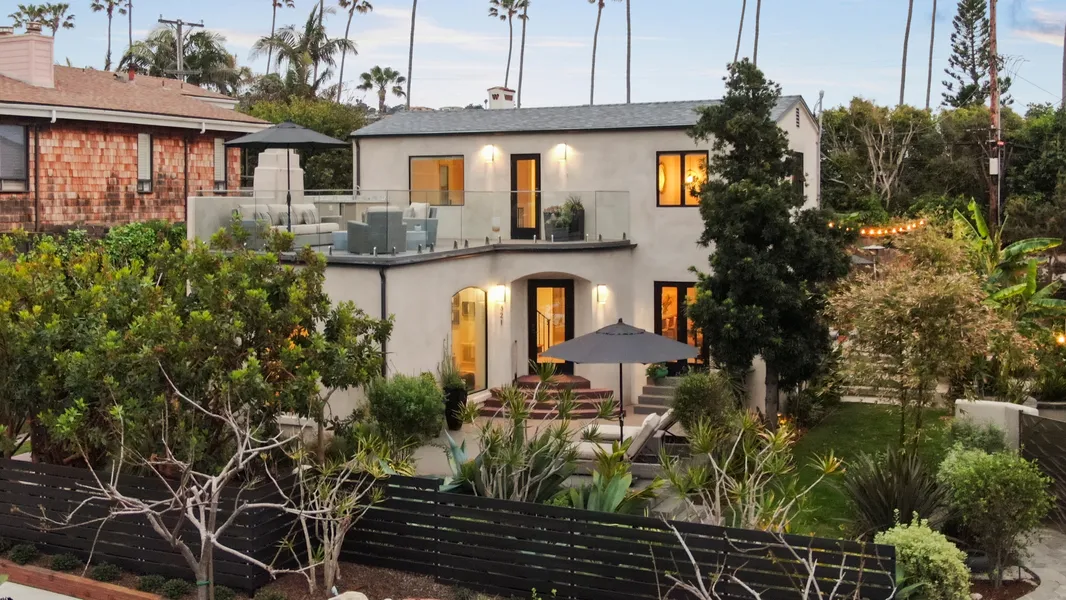 Spanish, modern bungalow steps to the Pacific Ocean in the Beach Barber Tract in La Jolla, CA. The 1927 built home was completely remodeled and reimagined in 2017, and lives like a new build, while retaining the original fireplace, stairs and wrought iron railings. The 3 bedroom / 2 bath home sits on a large lot and hosts 3 outdoor patios, an outdoor kitchen, outdoor shower, separate garage, and large flat grass lawn. Light, airy, bright and breezy - the classic Southern California bungalow.