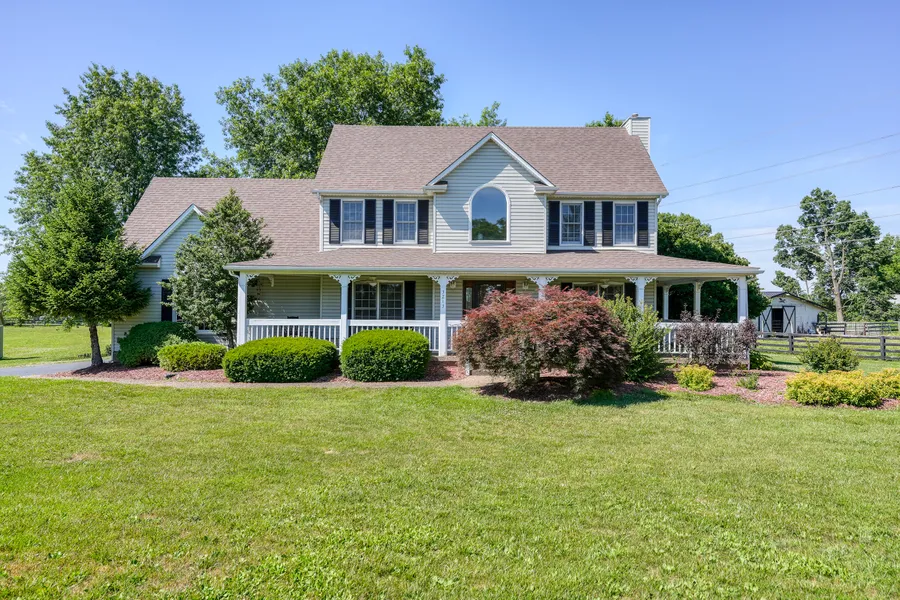 Enjoy peaceful country living with this charming, traditional Oldham County home. Situated on just under 1.5 acres of pasture surrounded by four rail horse fencing, this three-bedroom, three and a half bathroom home has so much to offer. Enjoy the quietness from your covered front porch overlooking the well-manicured front yard. An open and inviting foyer welcomes you into the home. A spacious living room, featuring a gas fireplace, offers wonderful space for entertainment or unwinding with access to the back deck. A powder room can be found just down the hall and a full laundry room with storage sits nearby. The large, eat-in kitchen comes complete with a center island with bar seating and views of the expansive backyard. A large pantry closet with floor to ceiling shelves and an abundance of cabinetry offer plenty of storage for the new owner. A freshly painted and newly carpeted formal dining room can be found just off the kitchen, making dinner parties a breeze! Follow the stairs to the second floor where you will find two bedrooms and a full bathroom. Down the hall, the expansive primary suite awaits! A double trayed ceiling with dental molding are just a few of the wonderful details that makes this room special. The large ensuite bathroom offers two vanities, a large soaking tub, private toilet closet, and glass shower stall. A spacious dressing room can be found in the primary suite which leads into an oversized walk-in closet. This space is ideal for a home office! The large, finished basement features a family room with wet-bar, unfinished storage space, a full bathroom, and separate office room. This home offers quintessential Kentucky living with close proximity to a neighboring horse farm. Two storage sheds in the backyard remain with the home and allow for additional storage. An attached two-car garage allow for protection to for your vehicles. This home truly offers the new owners the best of both worlds with private, country living yet just minutes away from Louisville! With easy access to I-71, Oldham County YMCA, Sauerbeck Drive-In, Eagle Creek Golf Course, and more!