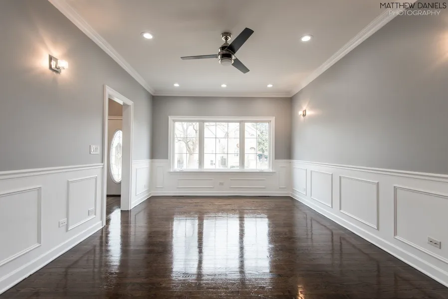 Gorgeous Remodeled Home - A True Gem! This beautifully remodeled home offers elegance, quality finishes, and modern comfort throughout. The main level features gleaming hardwood floors and a bright, open layout. The dining room includes a contemporary oval chandelier and a stunning wood staircase that adds warmth and style. The updated bathrooms are tastefully designed, including one with a relaxing Jacuzzi tub. The impressive kitchen showcases white cabinetry, a tile backsplash, quartz countertops, and a custom-built center island-perfect for everyday living and entertaining. The main floor offers three bedrooms with mirrored closet doors. The second level includes a spacious primary bedroom with a private bath, an additional bedroom, and an open area ideal for an office or sitting space. Modern light fixtures and skylights fill the upper level with natural light. The full finished basement features ceramic tile flooring, a laundry area, and plenty of space for recreation or storage. Detached two-car garage completes this beautiful property.