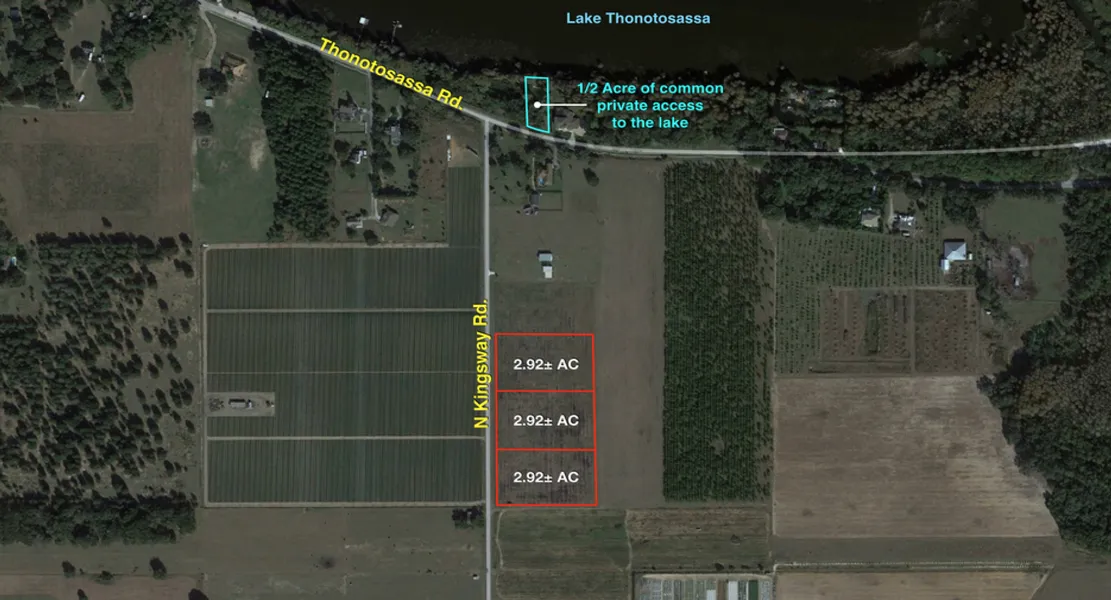 PROPERTY DESCRIPTION - The opportunity is to purchase one to three parcels totaling 8.76 acres located at N Kingsway Road, Thonotosassa, FL. The property is zoned Planned Development. An attractive amenity includes private common access to Lake Thonotosassa via a .5 acre waterfront parcel with a dock.