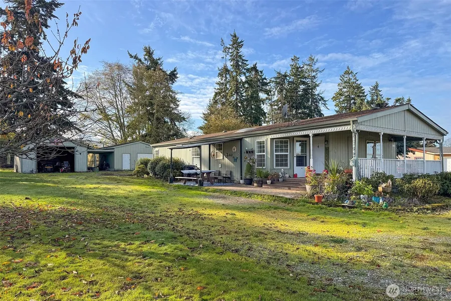 Lovely double-wide home on a full acre in Port Angeles! Enjoy a spacious 3-bedroom, 2-bath layout with covered front porch and back patio. The roof is only 5 years old. The property offers a 2-car attached garage plus two detached garages—perfect for storage, hobbies, or a workshop. A greenhouse and enclosed garden space make it ideal for gardeners. Mature fruit trees dot the landscape, and peekaboo mountain views add to the charm. Convenient location with room to grow and enjoy the best of country living close to town!