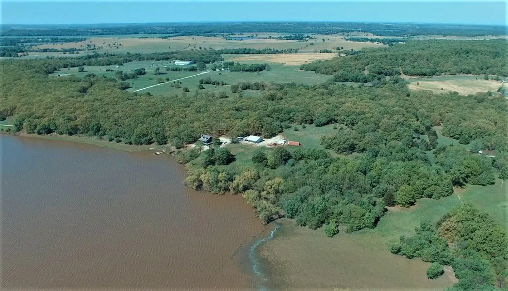 Here is a rare opportunity to own a very unique and world class piece of recreational property. Very seldom will you see a farm with a private lake of this size hit the open market. Designed for the outdoor enthusiast, this ranch offers excellent whitetail, turkey, and waterfowl hunting, and includes your own fully private 110-acre lake! A 2200 sq/ft rock home( built in 2004) is nestled in the oak covered hillside and overlooks the beautiful lake below. During the fall, watch through the giant back windows as ducks and geese circle and land on the scenic water below. Or glass the surrounding hillsides to keep track of the numerous deer and turkey that visit your feeders and call this property home. The east side of the lake offers a waterfowl marsh area with a flood control valve and 2 unfinished pit blinds tucked in amongst the timbered edge. Food plot locations have already been established and the internal road system provides access throughout the property by ATV, tractor, or pick up. There is also a fully enclosed Morton Style pull through barn with an attached climate controlled shop area that can be used to store your equipment, converted to house additional guest, or process the meat from all your successful hunts.