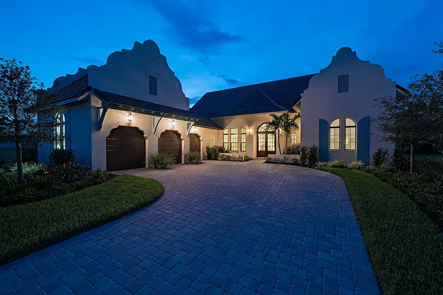 Offering privacy and a golf course setting, this three-bedroom, three-and-a-half-bath home with a den is truly an estate home of unsurpassed splendor. Featuring the Pontevedra floor plan of open-concept living with architectural details, this home includes vaulted ceilings with beam treatment, maintenance-free tile flooring in a wood-grain look and multiple French doors. A modern kitchen, that is well-equipped with a center island, Shaker-style cabinetry and stainless steel appliances, is flanked by a spacious and bright dining area with built-in buffet to create memorable gatherings. The home's accommodations are no less luxurious. Master suite offers a sitting area and bath with dual sinks, stand-alone soaking tub and expansive shower with frameless glass door. The home features a covered lanai area with a swimming pool and spa with spill-over water feature. Located in the renowned community of Fiddler's Creek, residents enjoy access to award-winning recreational and social activities that include tennis, fitness, resort-style pools, spa services, a fine dining restaurant, a poolside bar and grill and multiple clubs. Optional golf, marina and beach memberships are available.