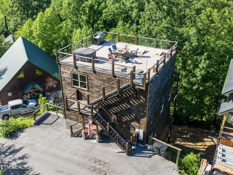 **MAJOR PRICE IMPROVEMENT** Seller is ready for his next venture so NOW is your investment opportunity! This high performing STR has repeat guests and earns 5 stars! Grossing at $137,000 in 2024. The home offers the perfect blend of modern luxury and relaxed comfort. You will be amazed immediately upon entering this turn key/ fully furnished contemporary built style cabin. The tastefully designed kitchen/dining area opens up to the main living room that features both a fireplace and TV where you can gather and make memories with loved ones. Then you can head to the rooftop deck for plenty of activities or simply some quiet time to soak in the hot tub and take in some stargazing on clear nights or just be mesmerized by some of the best views that East TN has to offer! You are just short minutes away from all of Pigeon Forge's main attractions and shopping! Or take a short drive to Gatlinburg and the Great Smoky Mountains National Park to do a little hiking and maybe enjoy a picnic by the river. Some Features this home has to offer: Home is currently in the process of being freshly stained and should be completed in February. NO HOA!! 4 bedrooms (Primary on the main opening to the deck) 4 full bathrooms. Private Pool Room (with half bath). Laundry Room (with a half bath). Outdoor Theater 2 gas Grills, Rooftop Firepit, Corn Hole Boards, Hot tub, Pool Table, Fully Furnished with all Appliances and Stunning Mountain Views! Buyers and agents to verify all info. Agents please see all instructions and associated docs.