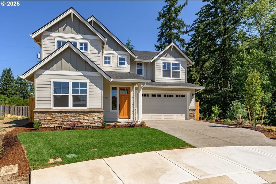 Stunning solid wood entry door- Open concept plan with exceptional finishes throughout including 9' ceilings & luxury vinyl flooring on entire main level. Kitchen designed with modern style custom built cabinetry, full tile backsplash, Quartz counters, island with overhang for bar stools. Beautiful custom lighting, SS Appliances including gas range. Standard amenities include 95% efficient forced air heat, gas fireplace with tile surround. Upgraded trim throughout. Main level has den/ office that could be converted to 5th bedroom - right next to the main level full bathroom with walk in shower. Upper level Primary bedroom has tray ceiling, in-suite bathroom with custom tile shower, glass door, quartz counters, double sinks, walk-in closet with custom organization system. Fenced back yard, front yard is landscaped. Wonderful neighborhood, easy commute and NO HOA FEE! Move in ready New construction in desirable Newberg location brought to you by West One Homes Inc.