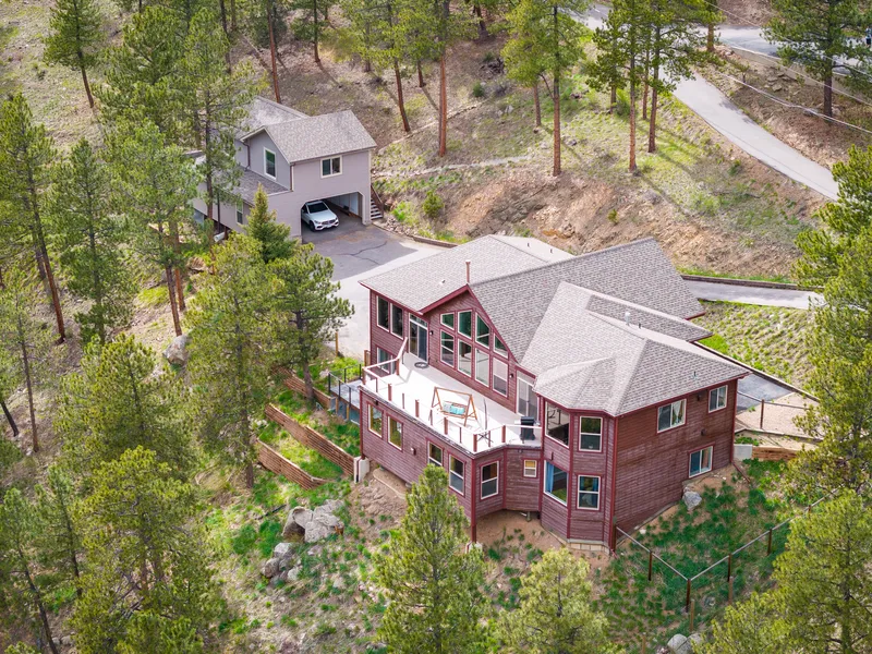 Nestled into the Foothills of the Rocky Mountains, your majestic paradise awaits. High vaulted ceilings with a wall of windows captures the view from every room! South facing great room with abundant natural light and sunshine. Imagine sitting on your private deck taking in the sweeping mountain views and listening to the rushing water of bear creek off in the distance. The main floor offers ample space for entertaining and family gathering. The great room opens up to a spectacular deck overlooking Bear Creek Canyon and Independence Mountain. The kitchen has been updated to include stainless steel appliances and granite countertops. This home has the rare main floor primary suite with a fireplace and spa like bathroom with an over sized walk in closet. If you are looking for a main floor living home, your search is over! Walkout lower level offers an incredible recreation room with knotty pine accents, wet bar area, game room, private junior suite plus, private deck and an additional bedroom. 3 Car Attached Garage plus the detached garage offers a heated bonus space on the upper level that could be used as an additional home office, workout room or workshop. Ample parking, paved driveway, no HOA and plenty of room to park an RV. Hiking and biking trails are easily accessed from the homes location. The home is located within minutes of downtown Kittredge and Evergreen and less than 10 minutes to I-70. The siding has been recently replaced and a new roof has been installed. The home has the possibility of an assumable mortgage for a qualified buyer. The current mortgage rate is a fixed rate of 2.25% for 30 years. Terms and conditions do apply, buyer will have to qualify with the sellers current mortgage company.
