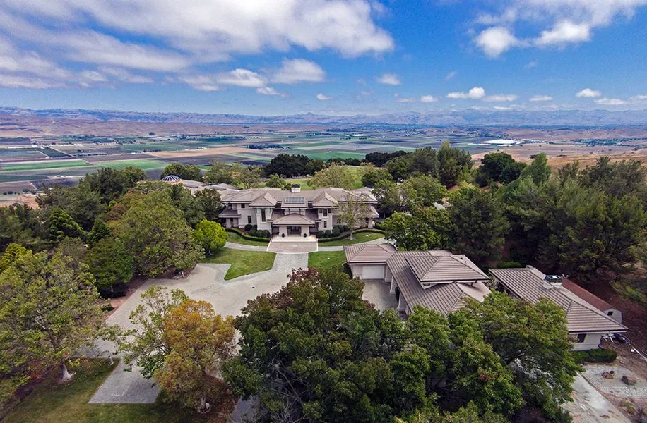 Main residence - Encompasses 18,000 square feet of building area, including 6 suites, 9 full and 2 half baths. The gourmet kitchen features granite countertops, cherry floors and cabinetry, Viking double ovens, separate sub-zero refrigerator and freezer. The great room boasts a revolving observatory-style dome skylight with an adjacent theater room. Additional features include a lower-level wine cellar and tasting room, a 6-bay, 2,700-square-foot detached garage and a circular motor court. The Library features ostrich leather floor and cherry wood cabinetry. Fully equipped and self contained site with 2 fire hydrants, separate building for boiler and electrical controls.