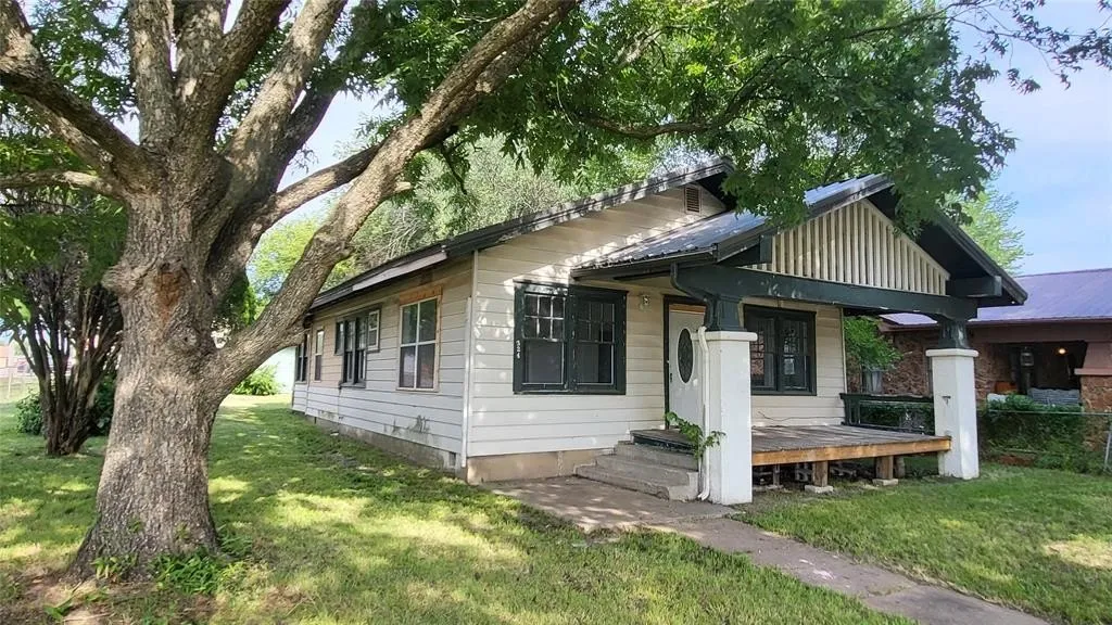 Updated & Spacious 2 bed, 1 bath *MOVE IN READY* High ceilings and numerous large windows flow throughout the house and create a bright and open floorplan from front door to back. Dining room has an eye-catching wall of built-ins with a big center window. This home has been recently updated with new vinyl flooring, central heat & air, metal roof and interior paint. The utility/laundry room is big enough for a bonus play or stay room. Mature trees, in the front yard, provide welcome shade. Put your personal touch on the exterior with a bit of fresh paint and landscaping. Close to I-40, this home is centrally located within 75 minutes from both OKC and Tulsa. Come take a tour and see for yourself.