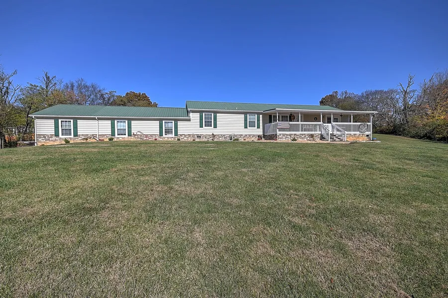 You will love this immaculately cared for 3-bedroom, 2-bathroom modular home, offering a choice between stunning mountain views from the expansive front porch or the tranquility of the covered back porch. The residence features an inviting open-concept design, incorporating a spacious great room that seamlessly integrates the dining area, kitchen, and living space. The kitchen boasts a generously sized island, ample cabinet storage, and convenient adjacency to the laundry room. The primary suite, featuring a dedicated bath and a walk-in closet, is separated from the two additional bedrooms for added privacy. This home also includes a three-car garage with office/ craft room and a concrete parking pad. Situated on over five acres of beautifully cleared, gently sloping land, this property offers a serene and spacious setting. All information taken from a third-party source (courthouse/tax records) and to be verified by the buyer/buyer's agent.